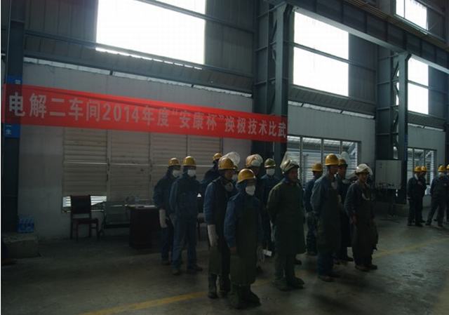 青海物產工業投資有限公司全面啟動"安康杯"競賽活動。2014年4月15日上午電解二車間舉行了"安康杯"換極技術比武大賽。公司副總經理張允忠,副總經理、工會主席張秉瑜,總經理助理秦建峰出席了開幕式。