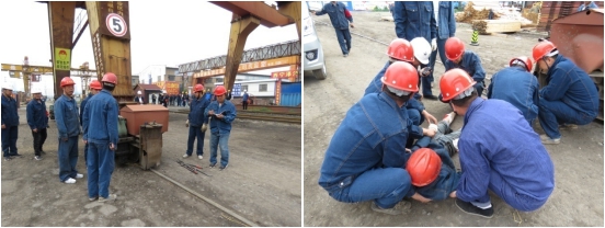 四是組織開展安全技能崗練兵活動。為提高公司青年員工的安全生產意識和發生機械傷害時的應急處置能力和自救能力,保障員工生命和公司的財產安全,公司團支部聯合公司安委辦、安全保衛部及裝卸作業部組織開展了2019年"安全生產月"機械傷害事故應急演練活動。通過本次演練,增強了裝卸人員的安全生產意識,對機械傷害安全常識起到了警示教育作用。