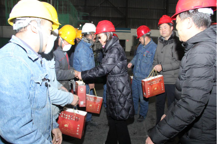 (工投公司訊 陳倫/文?劉燕?李朝暉/攝)"萬家騰笑語、四海慶新春"。在全國喜迎新年的美好時刻,2020年1月24日農歷除夕,集團黨委副書記、總經理劉玲同志,集團群團工作部負責人一行,在公司黨政班子的陪同下,深入車間班組,為堅守在生產一線的干部職工送上節日的問候和精美的慰問品。