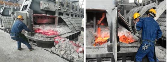 鏡頭三:電解車間"更換陽極作業"比武現場,兩車間選派了業務能力最強人員組成參賽隊對抗比拼。面對電解槽滾滾熱浪,每一名選手都沉著冷靜、從容應對;他們密切配合、張弛有度,按照操作規程有序進行……