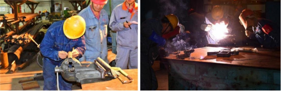 鏡頭二:檢修車間鉗工、焊工"小件制作"競賽現場,各參賽選手手繪設計草圖,運用精湛的技能,制作出精美的參賽作品。