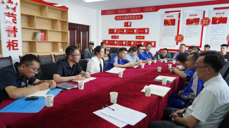 參觀完后,各位黨員與汽車系師生開展了互動(dòng)式交流研討。李玉宏、楊植等優(yōu)秀畢業(yè)生為在校學(xué)生們講述了個(gè)人的成長經(jīng)歷,以及如何面對職場中遇到的各種困惑和難題,告訴大家只有自身具備過硬的技能、本領(lǐng),才能在未來抓住機(jī)遇,迎接挑戰(zhàn)。“物產(chǎn)工匠”石學(xué)林為大家講述了自己如何從一名普通修理工通過不斷學(xué)習(xí),刻苦鉆研技術(shù),提升業(yè)務(wù)能力成長為一名優(yōu)秀的技術(shù)骨干及優(yōu)秀“共產(chǎn)黨員”的事跡分享。在輕松的研學(xué)交流中,雙方互問互答,面對當(dāng)前汽車行業(yè)形勢,堅(jiān)定自身就業(yè)信心,做好職業(yè)人生規(guī)劃,勇于嘗試探索,秉持積極的心態(tài),努力實(shí)現(xiàn)個(gè)人理想,書寫屬于自己的青春華章。