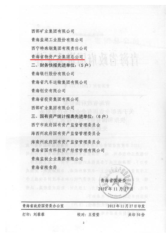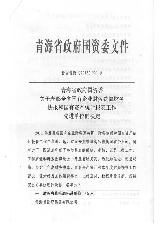 2012年,在集團及所屬各公司領導的高度重視下,在所屬各公司的大力支持和密切配合下,在辛勤工作在財務會計崗位上的同事們的共同努力下,集團總公司圓滿完成了省國資委和省財政廳各類報表的上報工作,財務信息工作質(zhì)量、時效性和財務分析水平都比上一年度有所提高,受到了省國資委和省財政廳的好評,集團總公司2011年度財務決算工作被省國資委評為先進單位,集團財務審計部張莉青同志被省財政廳評為2012年度財務快報工作先進個人。